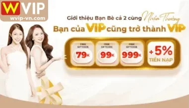 WVIP thường xuyên mang đến nhiều chương trình khuyến mãi và thưởng hấp dẫn cho người chơi mới và thành viên lâu dài. Từ tiền thưởng chào mừng, hoàn trả cược, đến các ưu đãi đặc biệt theo tuần hoặc tháng, tất cả đều giúp nâng cao trải nghiệm chơi game và tăng cơ hội thắng lớn.